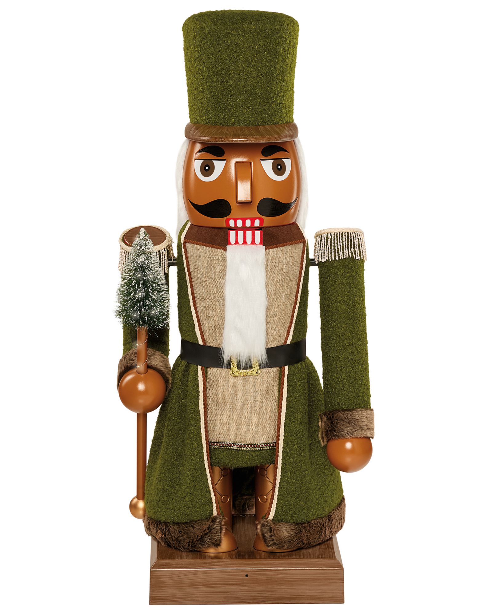 Bring the magic of the season home with this Collapsible Green Bouclé Animated Nutcracker! Standing 5 feet 2 inches tall, this holiday icon is dressed in a textured green suit with a fur trim and fringe lapels and carries a flocked Christmas tree wand. It's fully collapsible for easy setup, disassembly, and storage. Turn up the holiday cheer as it plays a rendition of “Jingle Bells,” while the mouth opens and closes. Whether placed by your tree, in an entryway, or as the centerpiece of your holiday party, this life-sized Nutcracker is sure to wow your guests!