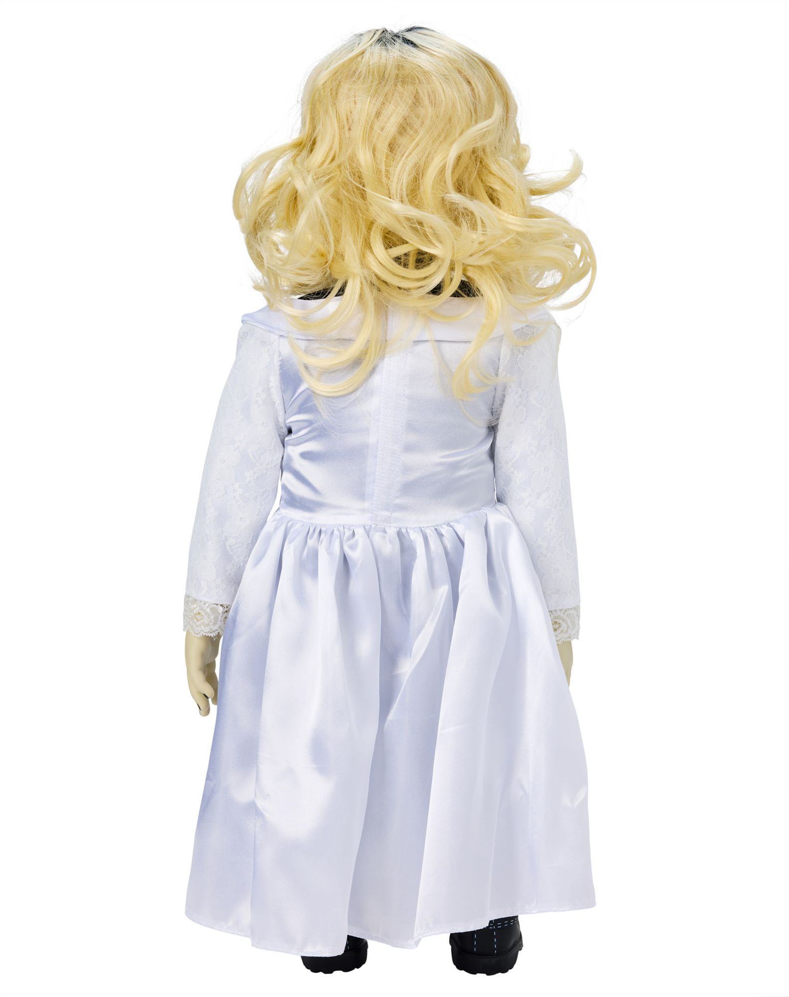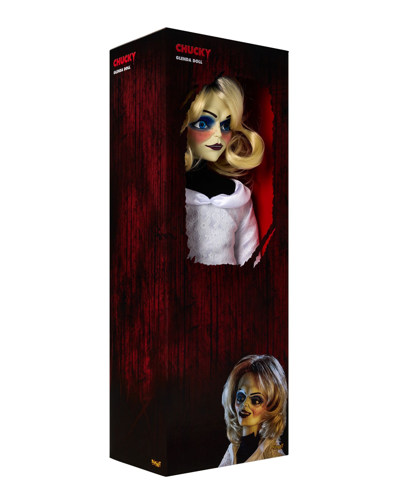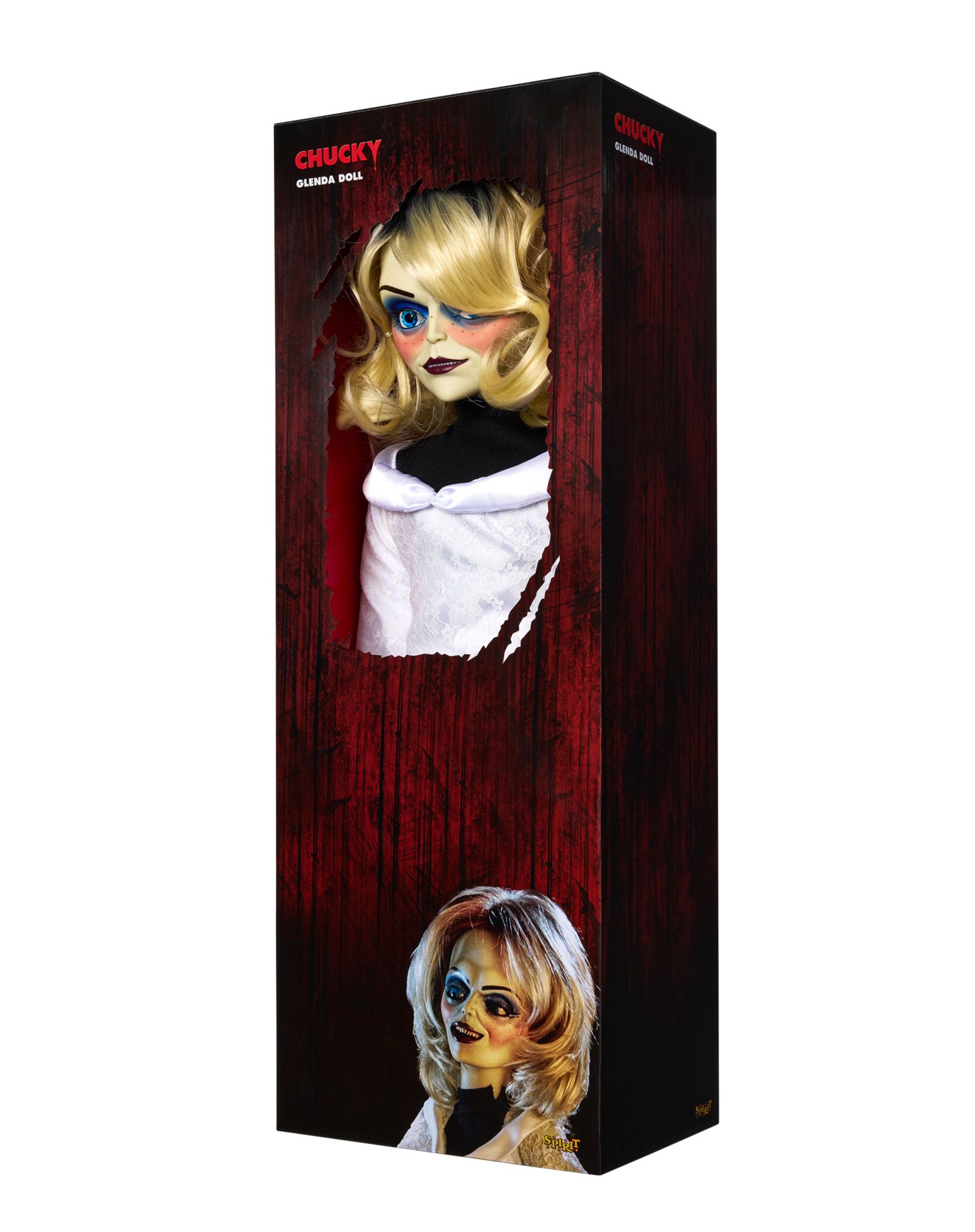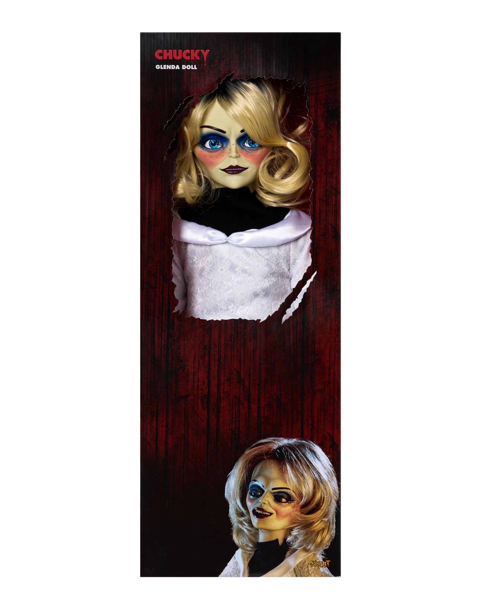 Add your favorite horror icon to your collection with this 24" tall Glenda doll! Their uniquely menacing features, bold makeup, white gown, and platinum blonde waves pay homage to the iconic looks of their parents, Chucky and Tiff. Glenda comes packaged in their very own box making them the perfect collectible for any horror fanatic!