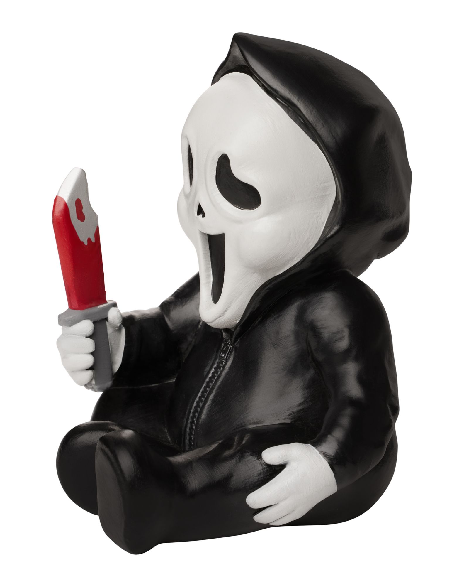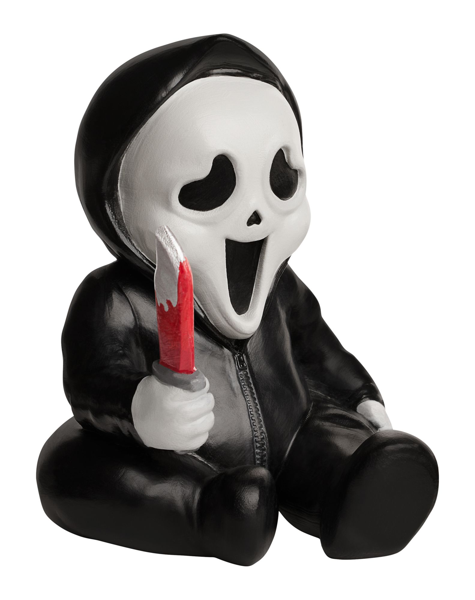 He may seem cute, but baby Ghost Face is pure evil. Embrace your love for slasher movies and give your guests a good scare when you add this officially licensed Ghost Face Mini Horror Baby Static Prop to your home décor collection. Put this decoration on display and make it clear you're the ultimate horror fan!