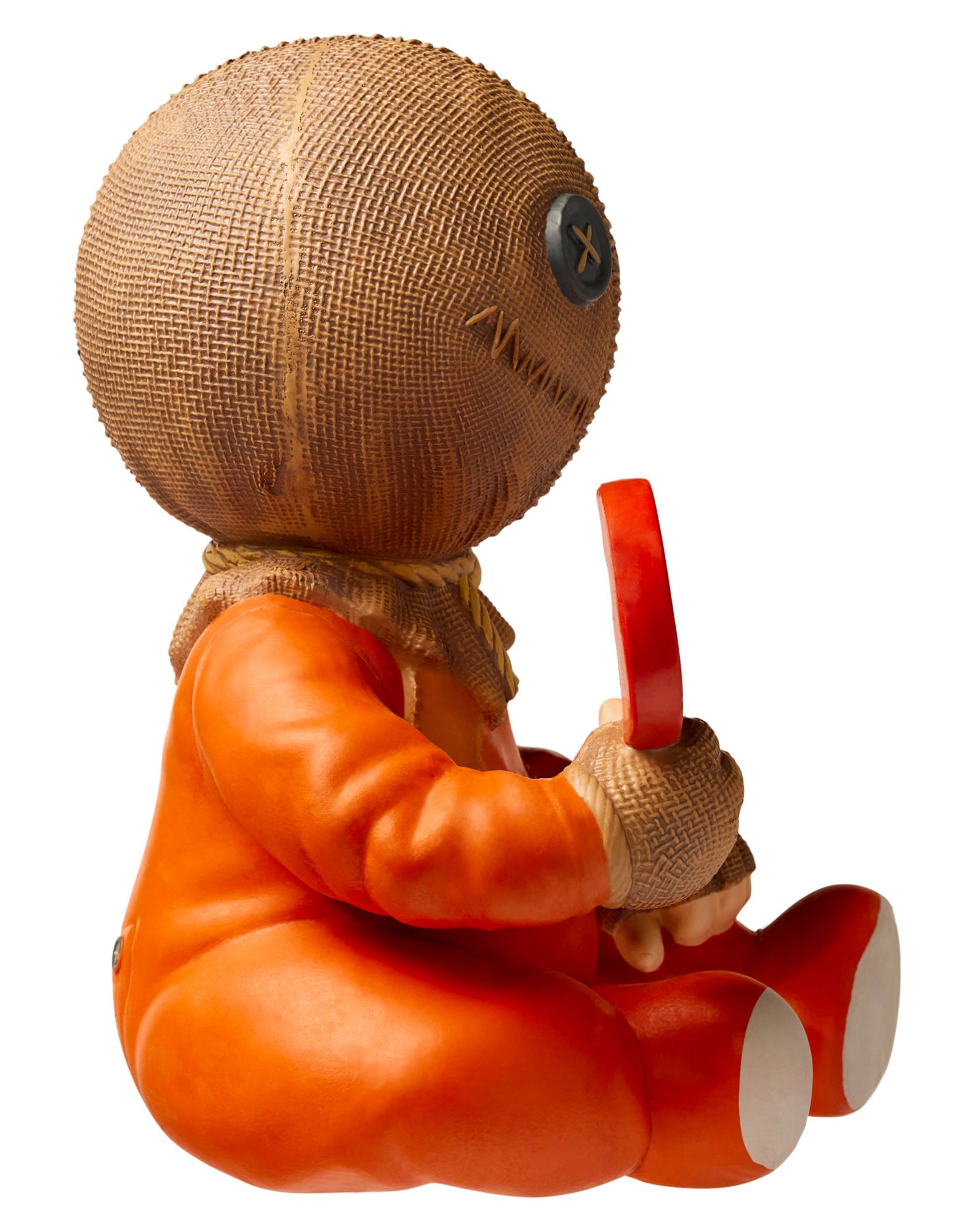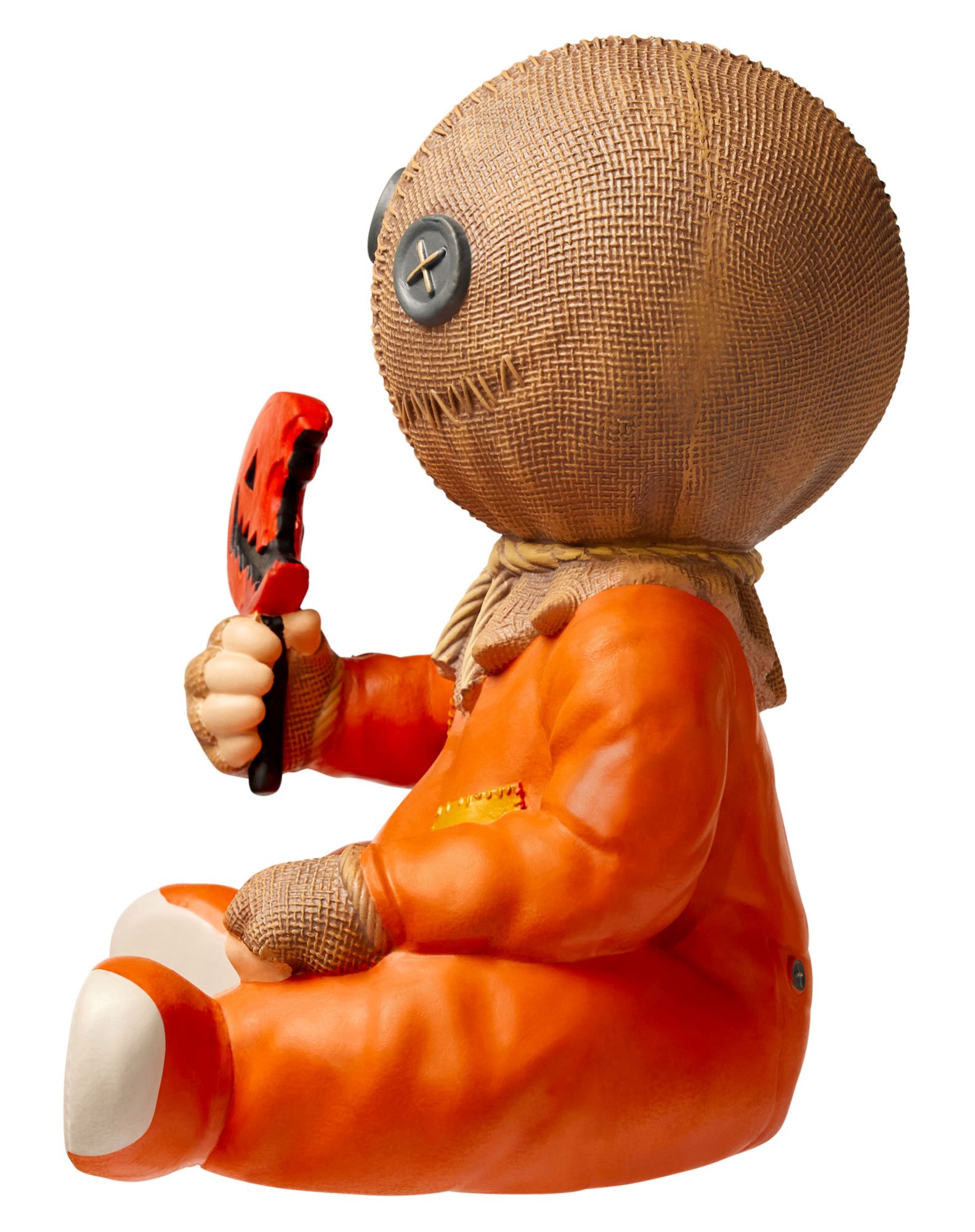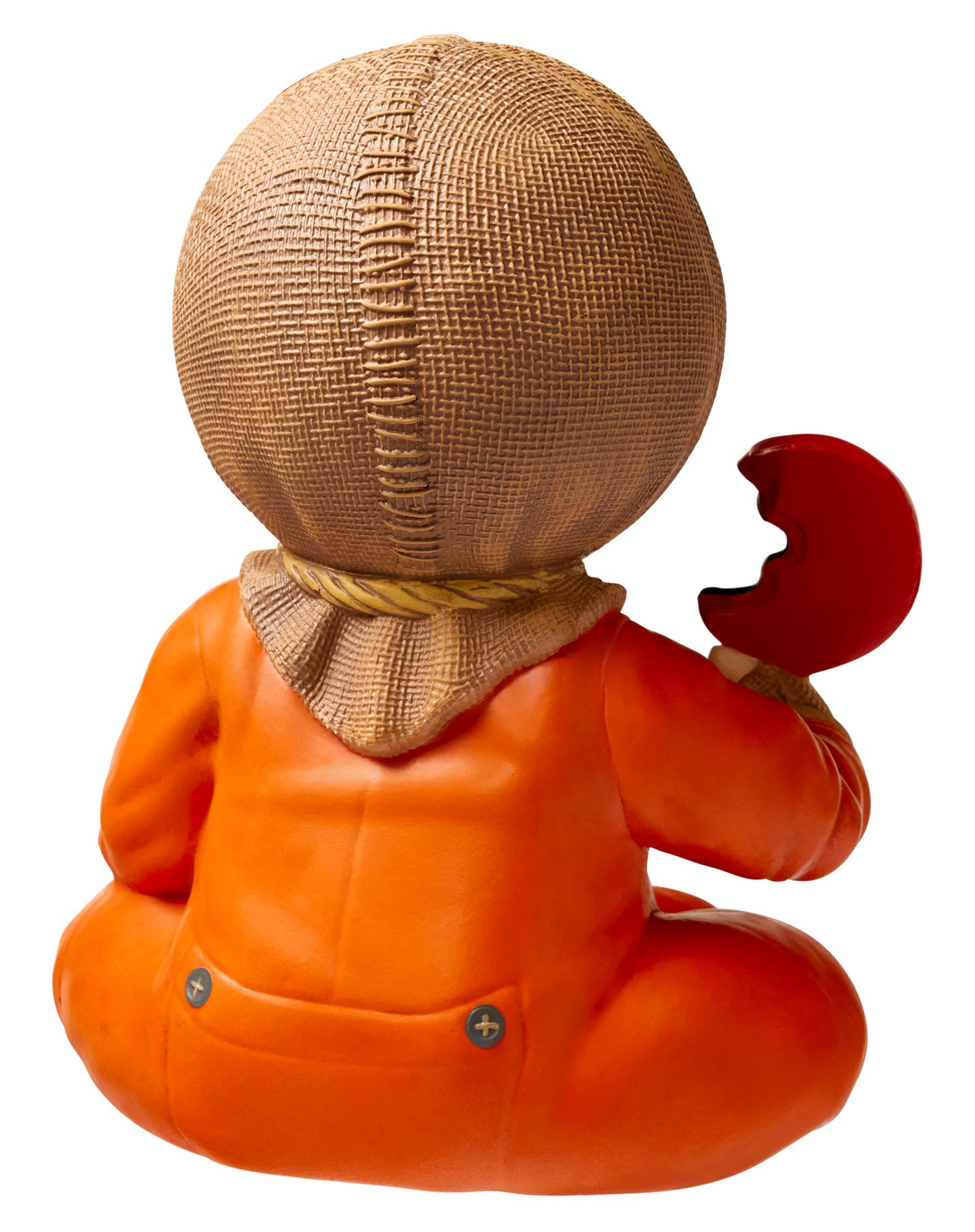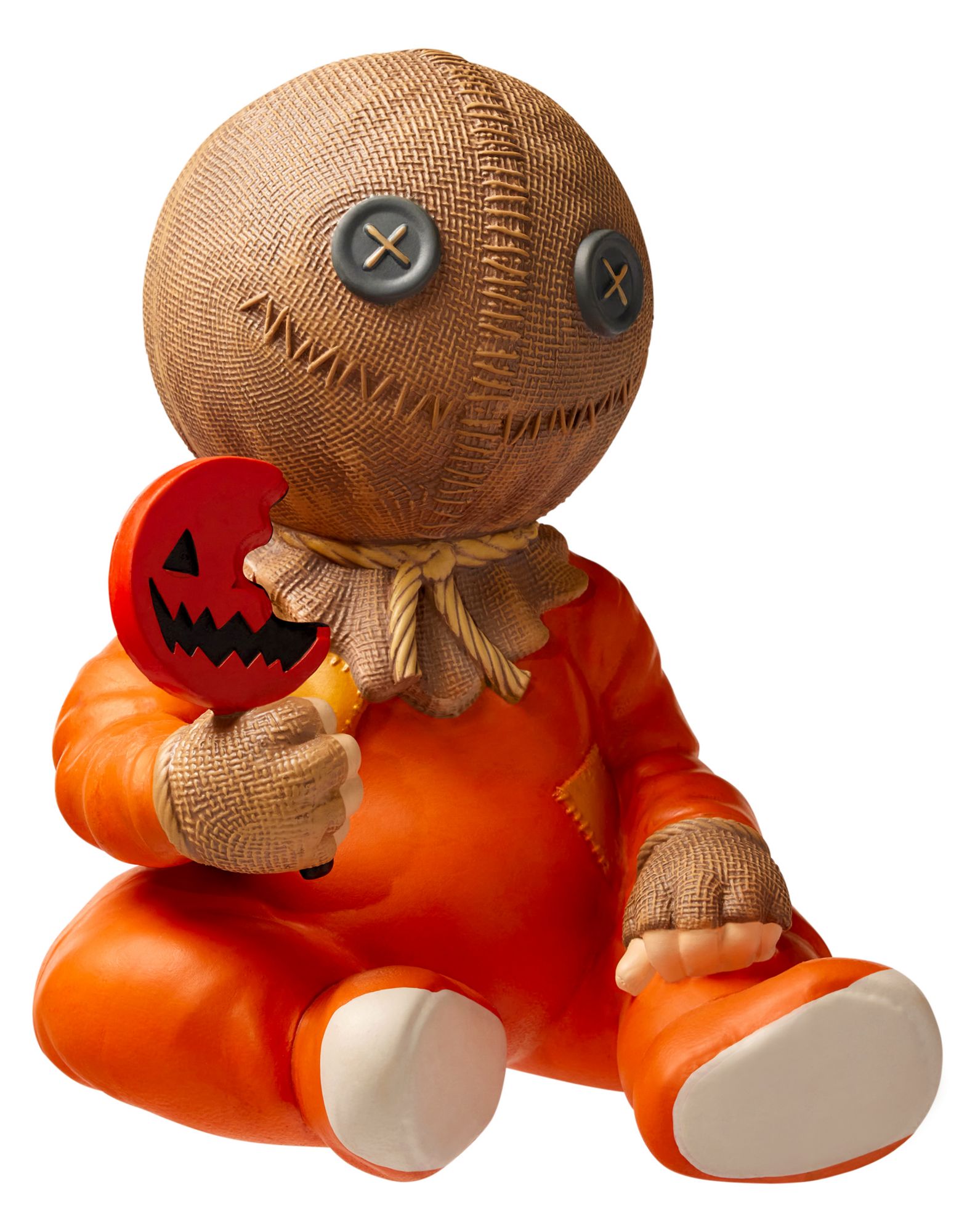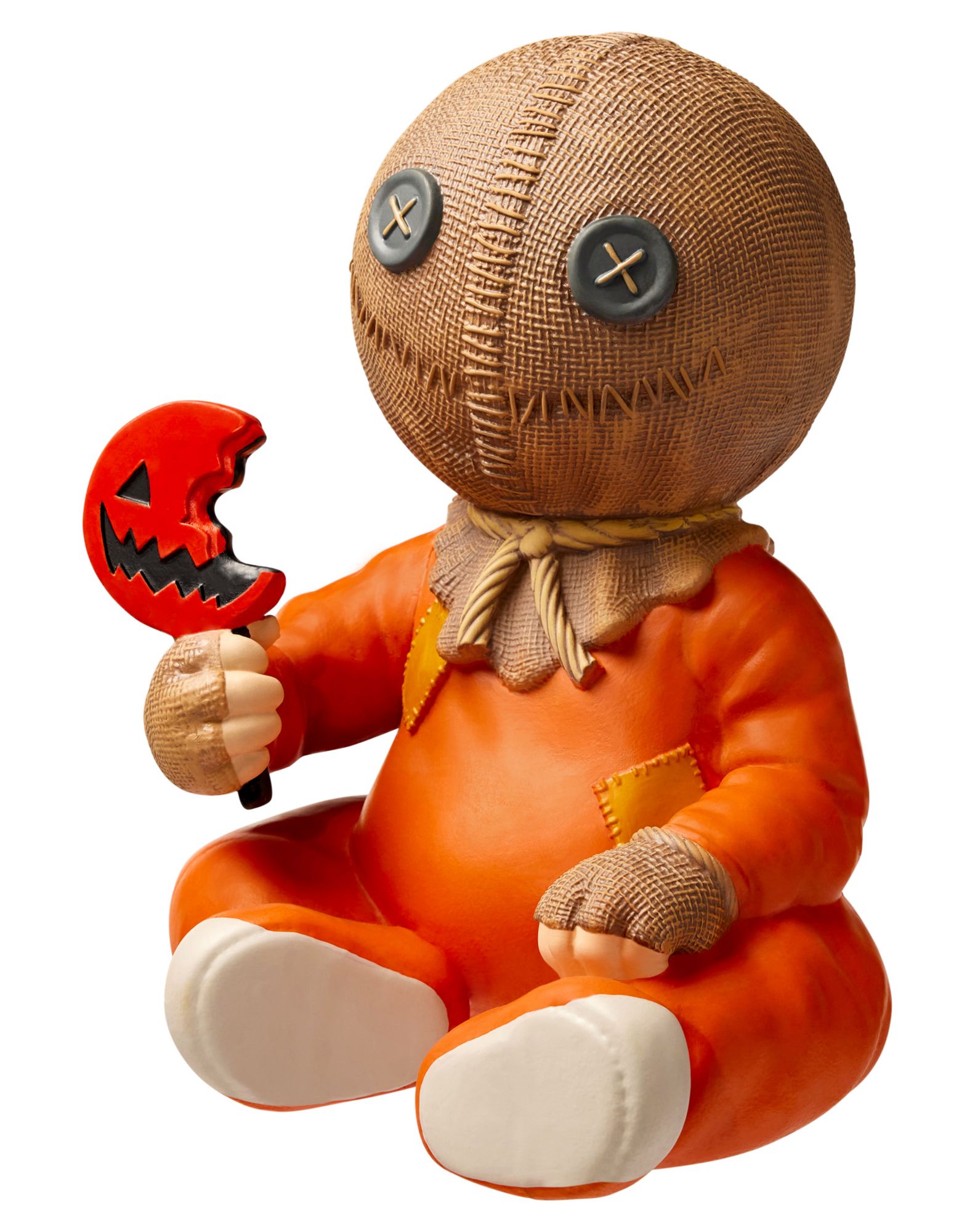 Add some horror-inspired decor to your home this Halloween with this officially licensed Sam Horror Baby. Any fan of the movie Trick 'r Treat will love adding this adorable Sam baby to their horror collection. Equipped with his signature lollipop, follow the rules of Halloween and he'll always stay happy in your home.