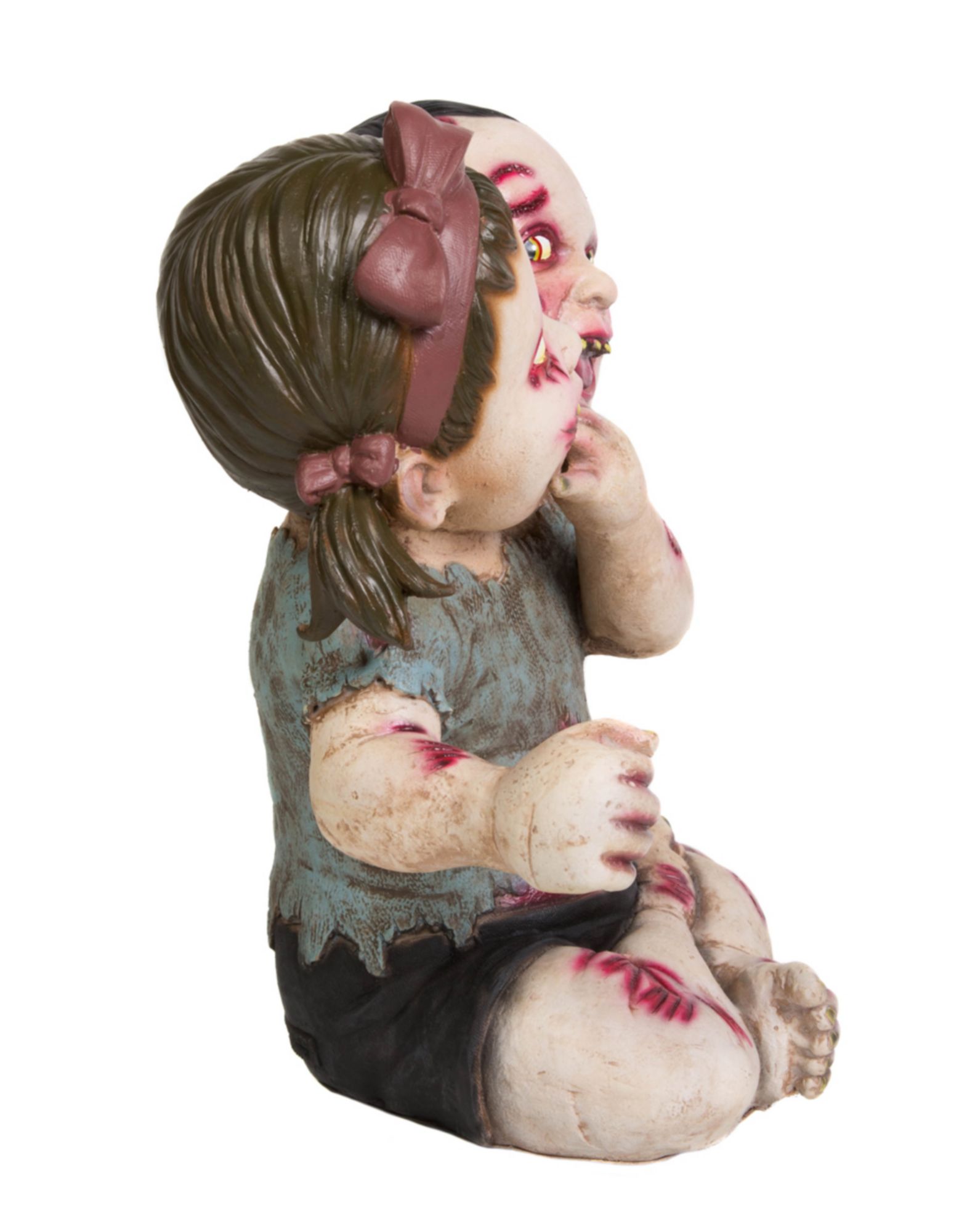 Double trouble has taken on a whole new meaning with the Double Trouble Zombie Baby. These zombie twins are the perfect gruesome addition for your Halloween scene. Features twin zombie babies with oozing bite marks.