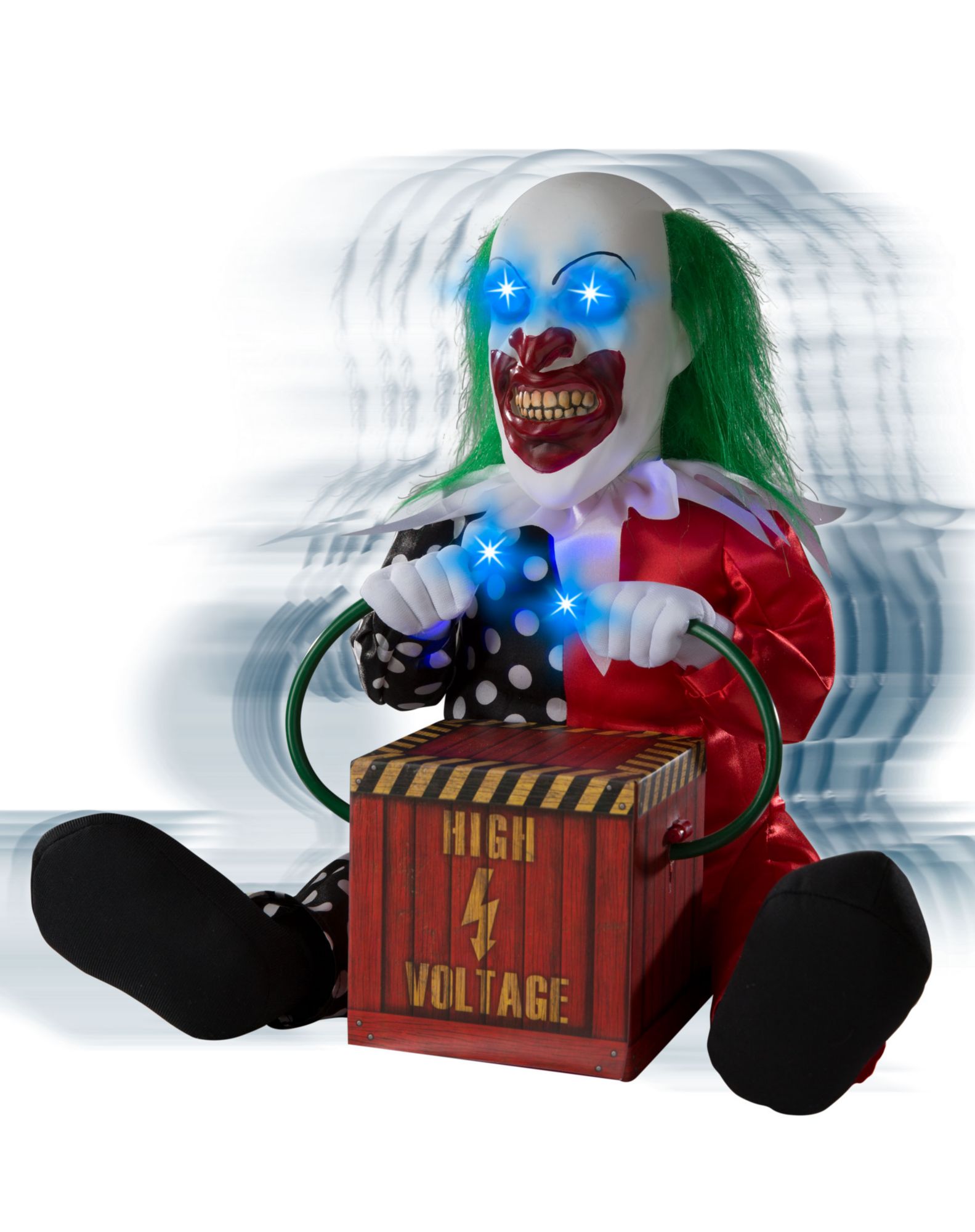 Not all clowns are terrifying, but don't trust this little guy! With his twisted grin, wide eyes, and eerily pale skin, Zappy is anything but friendly. Turn him on and watch the wires in his hand come to life while Zappy begins shaking and his eyes light up with electricity! No one will want to go near him when they hear his horrifying laugh and witness the wrath of this high-voltage horror show!