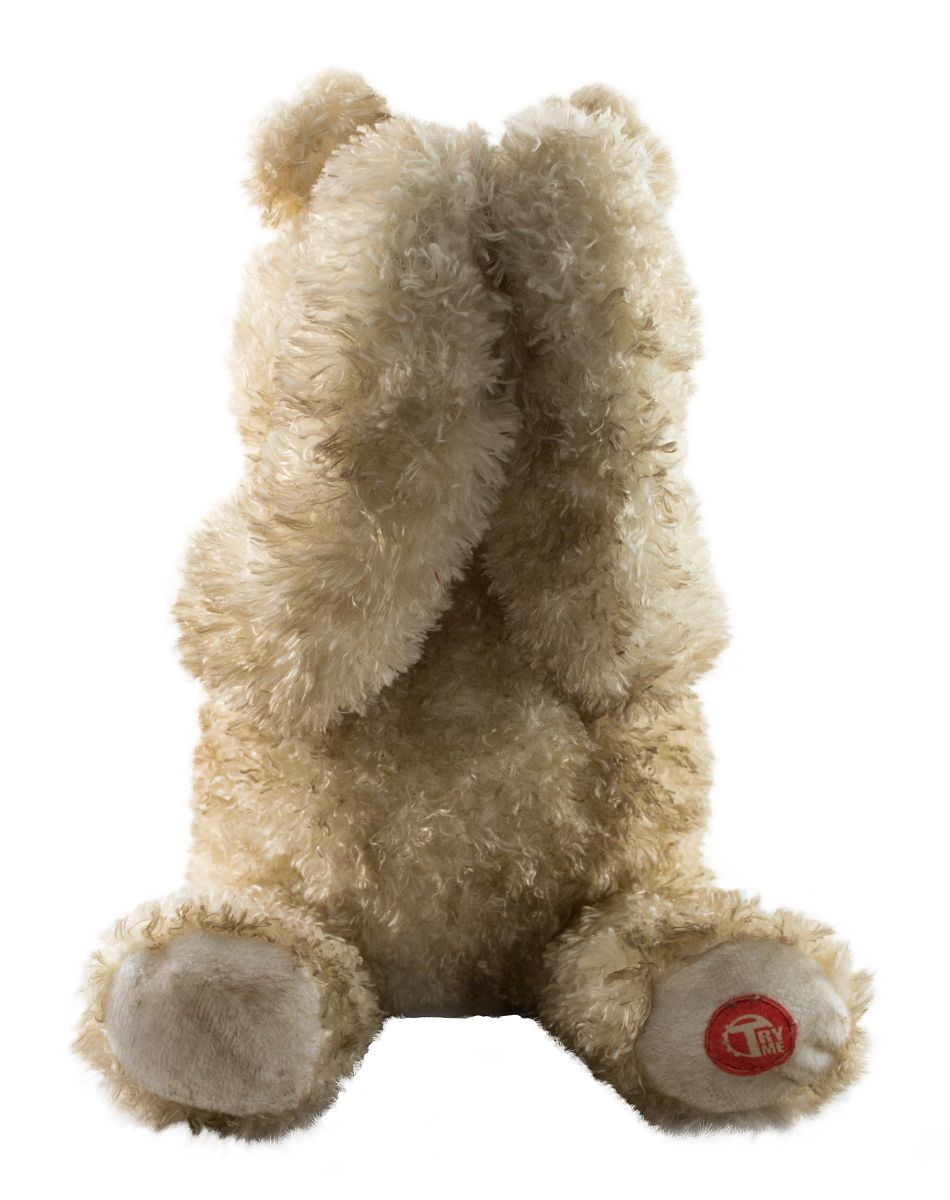 A game of peek a boo has never been more horrifying. What seems like just an ordinary stuffed bear surprises you with a nightmarish row of gnarled teeth and glowing red eyes! Your friends will never see what's coming when this bloodthirsty bear says, "cute and cuddly, soft and snuggly, that is me, want to see?"