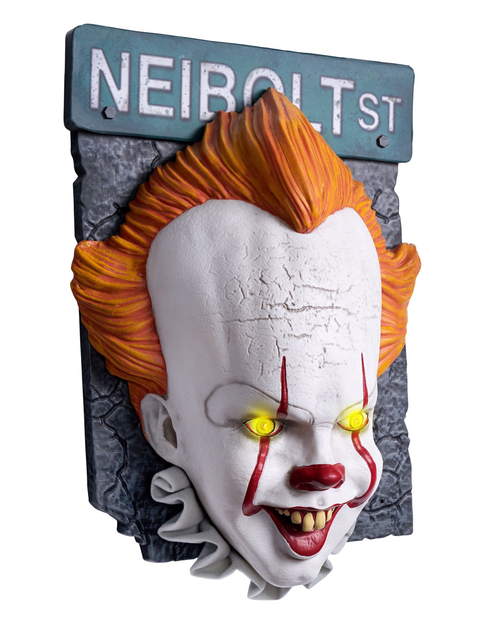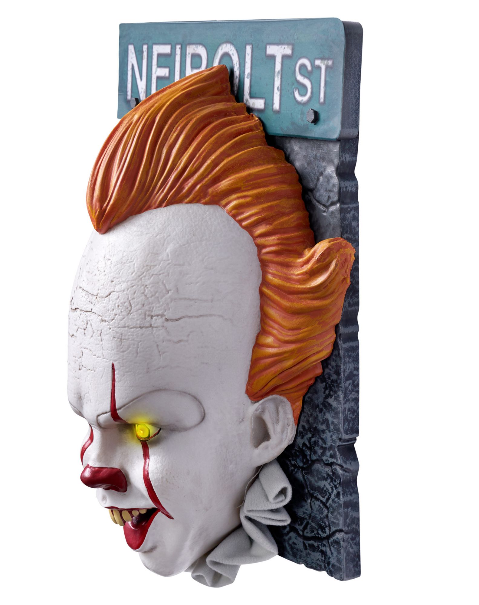 Have your favorite horror movie clown greet guests with this official It Pennywise Door Knocker! Featuring Pennywise with his bright yellow eyes and spooky smile, this scary decoration will let everyone know you're all about the haunted house effect. Amp up the fear when you hang it from any door and wait for the screams!