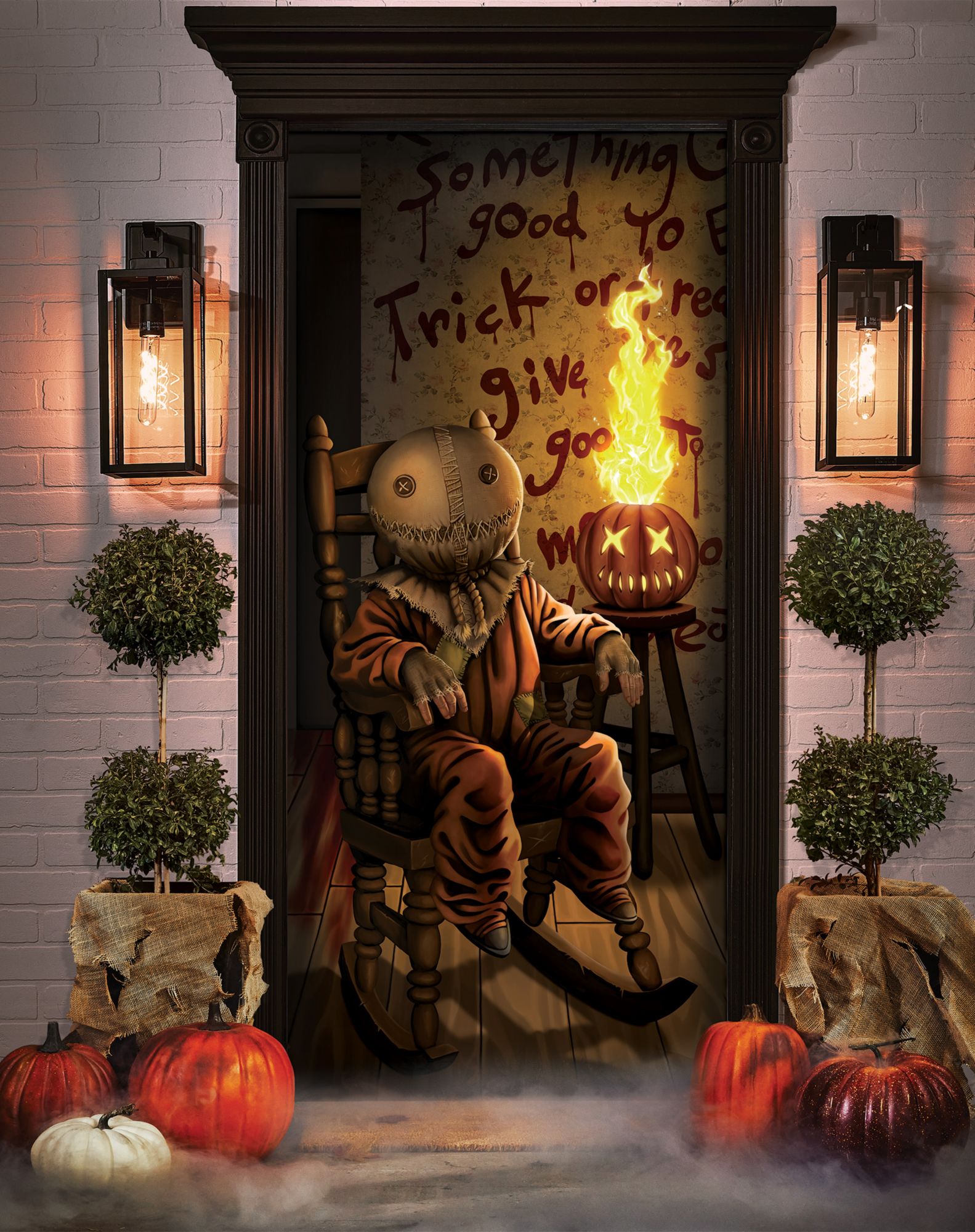 Revamp your Halloween décor game with this officially licensed Sam Trick 'r Treat door cover! Display this frighteningly festive door cover, and you'll have the best Halloween setup on the block.
